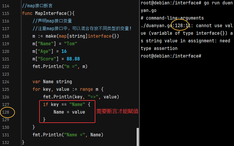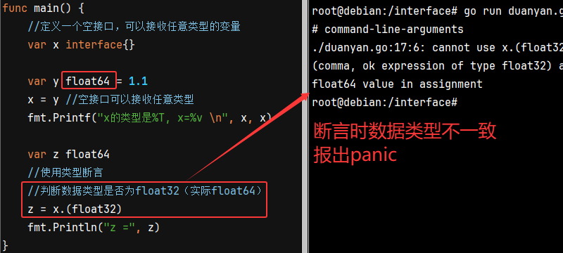 在进行类型断言时,如果类型不匹配,会报panic