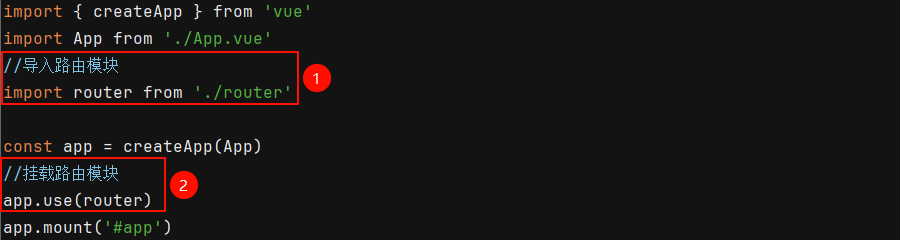 编辑 main.js 文件,导入并挂载上面定义的 router 路由模块