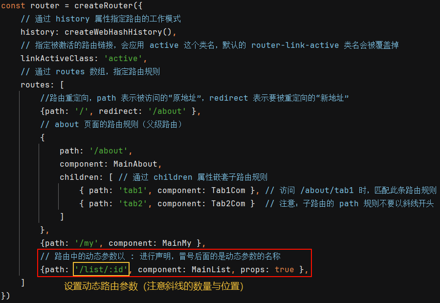 ① 在 router.js 路由模块中设置动态路由规则