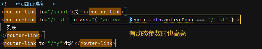 ③ 动态路由匹配时的高亮