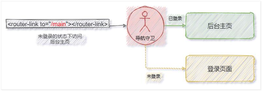 ① 导航守卫可以控制路由的访问权限,示意图如下: