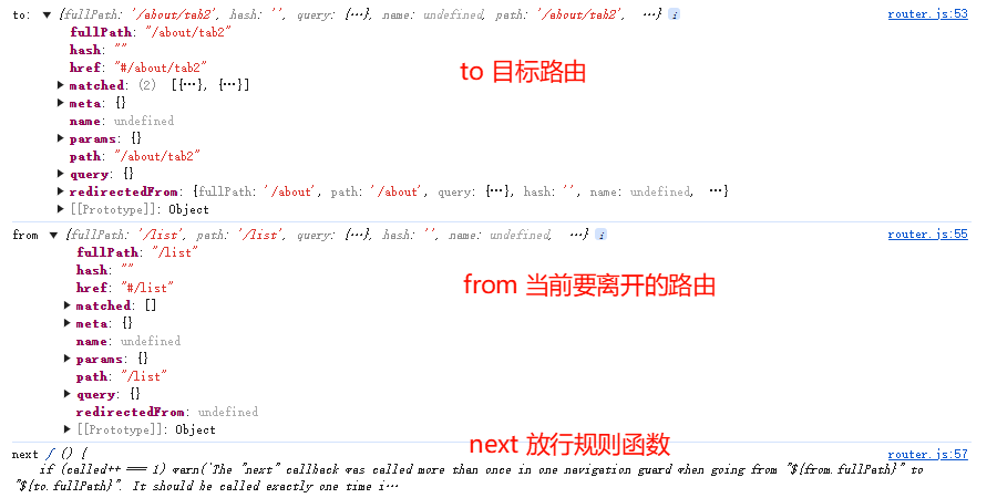 - from 表示当前导航正要离开的路由对象