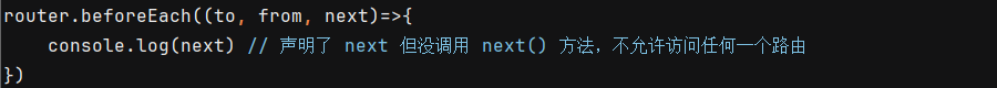 ⑵ 声明了 next 形参但没调用,不允许用户访问任何一个路由