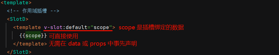 <template v-slot:default="scope"> ... </template>