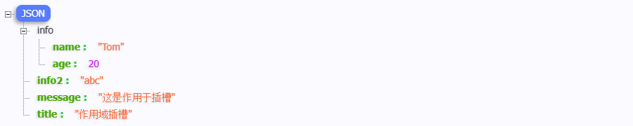 外界接收到的变量是一个大对象(Json),里面包含插槽绑定的所有数据,比如上面案例中插槽绑定的数据,接收到的结果如下: