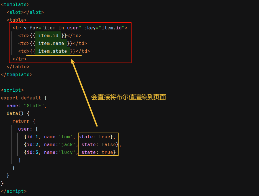 比如要封装一个列表数据,此时有个表示状态的字段,值是布尔,但组件中无法确定怎样展示,需要交给组件使用者确定