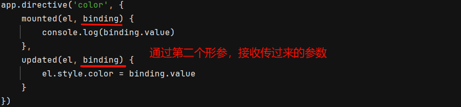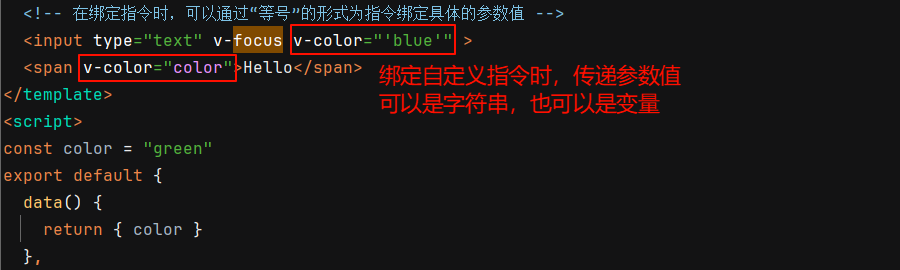 在绑定指令时,可以通过“等号”的形式,为指令绑定具体的参数值: