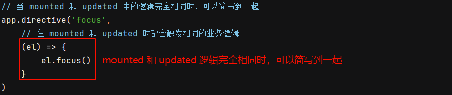 如果 mounted 和 updated 函数中的逻辑完全相同,则可以简写成如下格式: