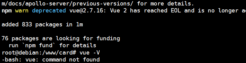 ① 在 linux 系统中,vue 脚手架提示安装成功,使用 vue 命令却提示:-bash: vue: command not found。